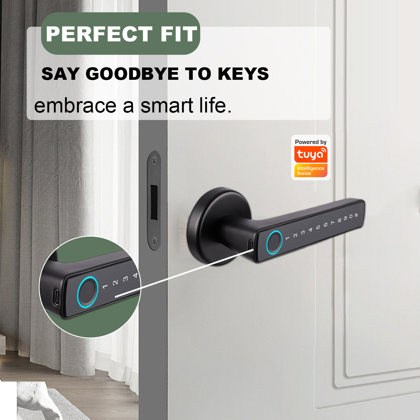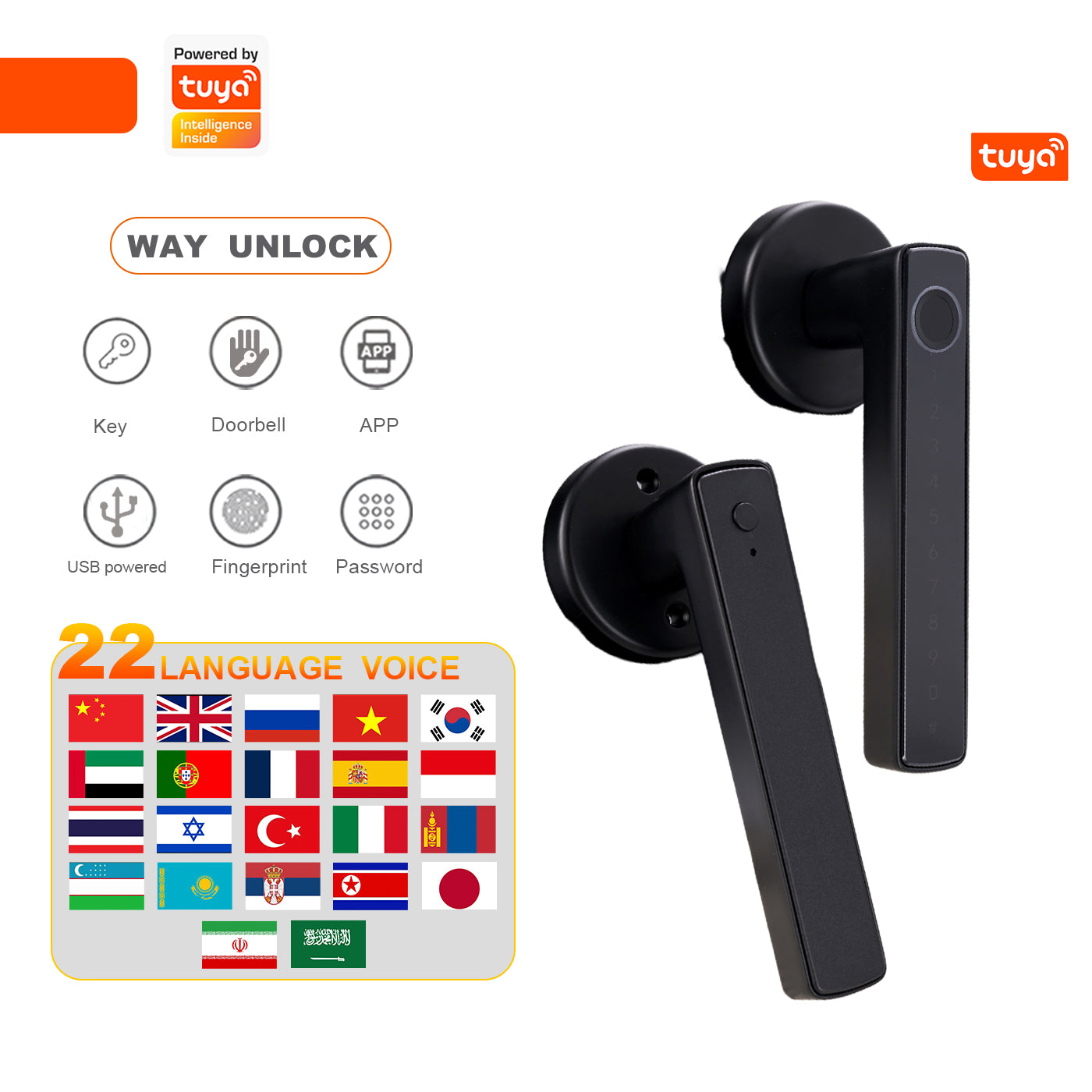 Tuya Biometric Smart Door Lock with Electronic Fingerprint Handle, Split-Type Digital Keyless Lock